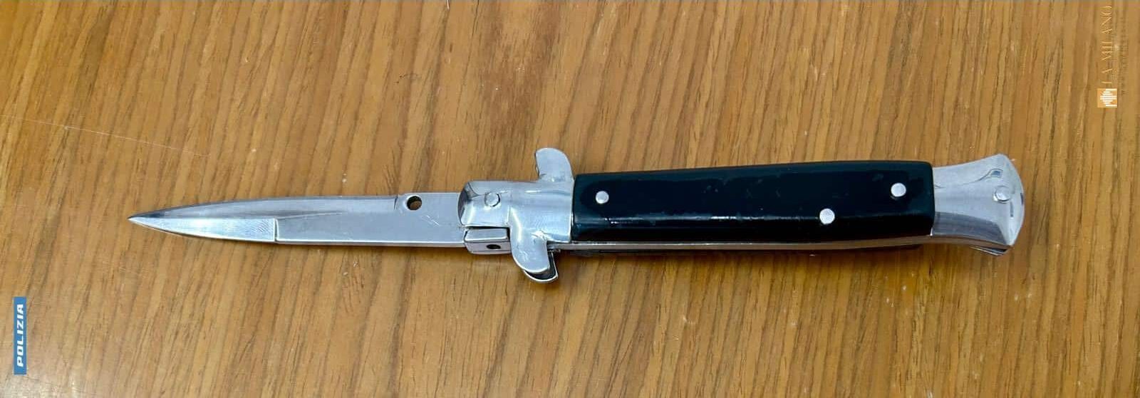 I poliziotti hanno quindi proceduto a una verifica più approfondita, estendendo il controllo anche al veicolo e agli effetti personali del ragazzo. All’interno del marsupio, è stato rinvenuto un coltello a scatto, subito sequestrato dagli agenti in quanto arma vietata al porto senza giustificato motivo.
